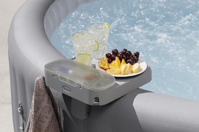 Deze handige spa-accessoire biedt de ideale oplossing voor het veilig en overzichtelijk opbergen van je benodigdheden tijdens een ontspannen spa-sessie. Het is uitgerust met een waterdicht vak om waardevolle spullen te beschermen, houders om je handdoeken netjes te bewaren, een houder voor je tablet om te genieten van entertainment, en een dienblad voor hapjes en drankjes binnen handbereik. Dankzij de verstelbare poten past het moeiteloos op spa's met een wanddikte van 5 tot 25 cm. Een must-have voor iedereen die het maximale uit zijn spa-ervaring wil halen!