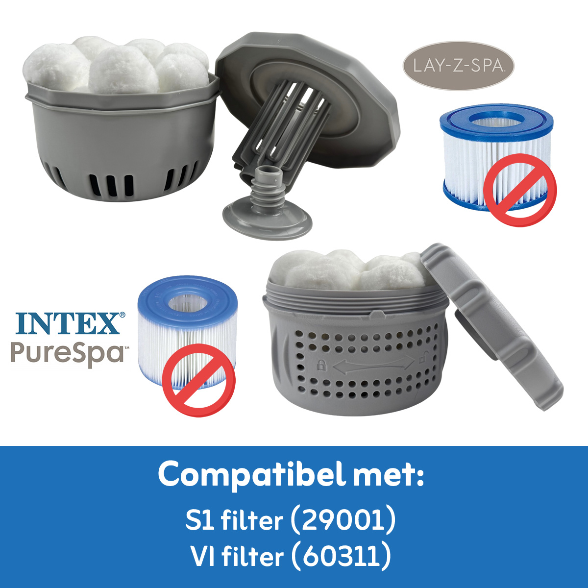 - Set Schwimm® filterbollen (voldoende voor 2 filters)
