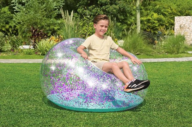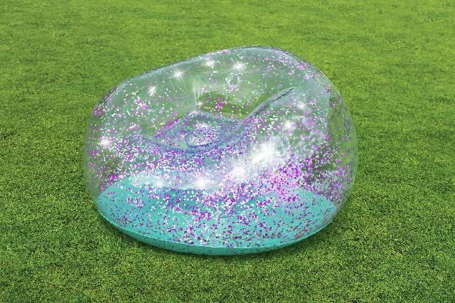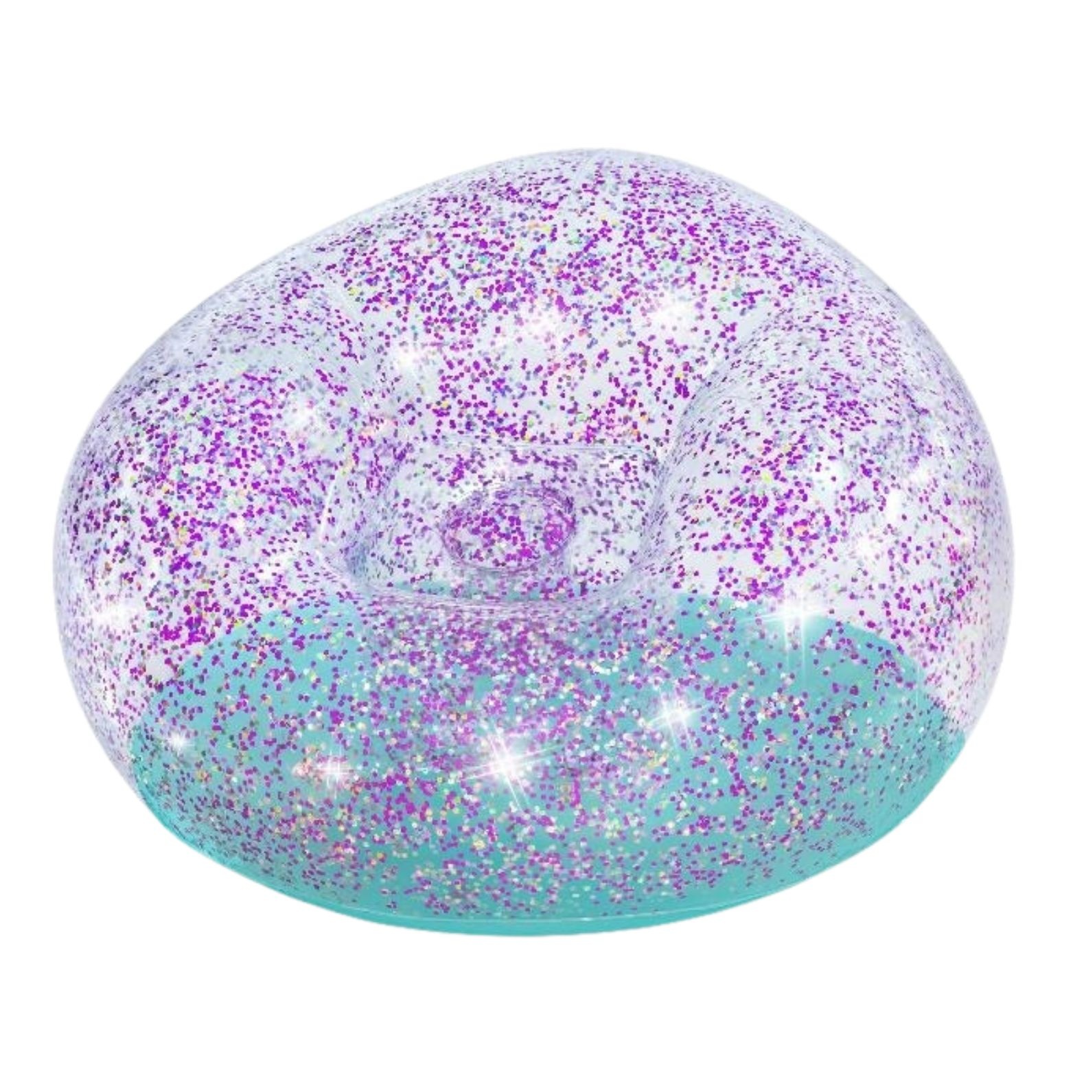 Deze Bestway Glitter Dream kinderstoel is een geweldige keuze voor kinderen vanaf 6 jaar en heeft een draagvermogen van maximaal 75 kg. Dankzij de glinsterende zilveren en paarse glitters in het transparante ontwerp, krijgt de stoel een speelse en fonkelende uitstraling. Of het nu binnen of buiten is, deze stoel is perfect voor elke omgeving. De opblaasbare stoel vereist vrijwel geen onderhoud en is eenvoudig schoon te maken.