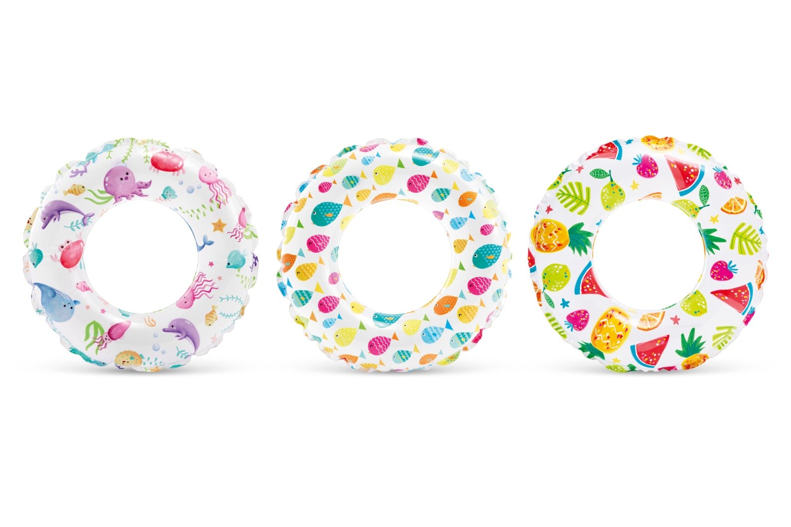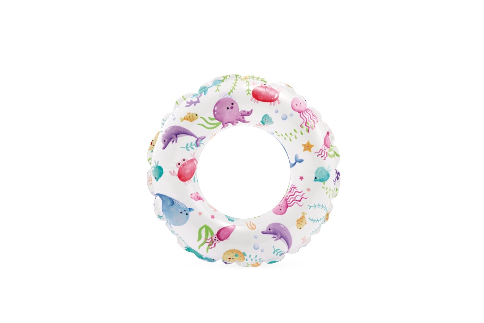 Drijf en spetter in stijl met de Intex Levendige Print Zwemband van 61 cm! De kleuren met prints zijn helder en opvallend terwijl jij lekker in de zon dobbert.