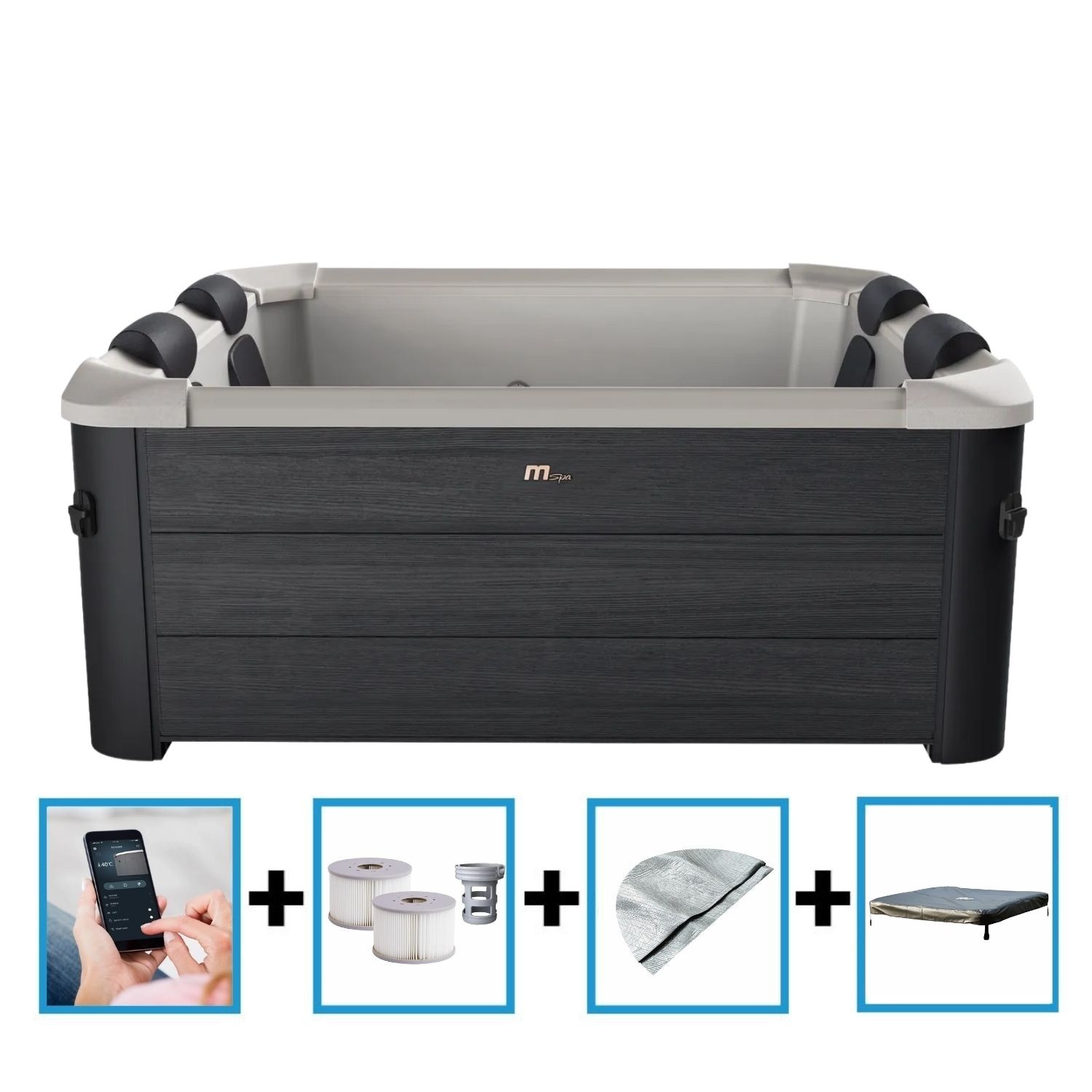 De MSpa Oslo Plus 6 persoons frame spa wordt geleverd met: