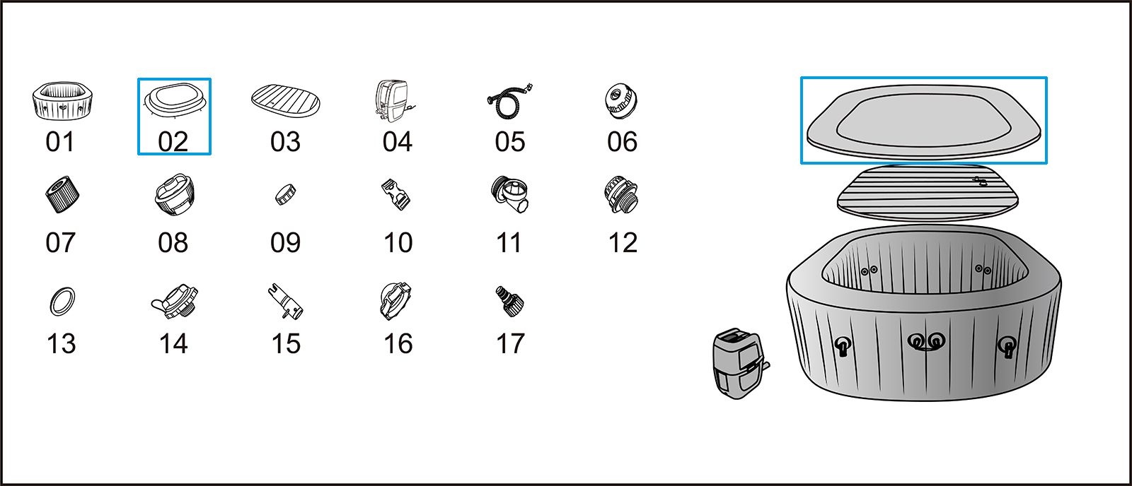 Raadpleeg uw handleiding om te controleren of dit artikelnummer geschikt is voor uw Lay-Z-Spa product. Niet geschikt voor spa's van andere merken!