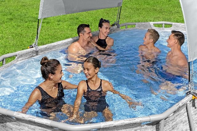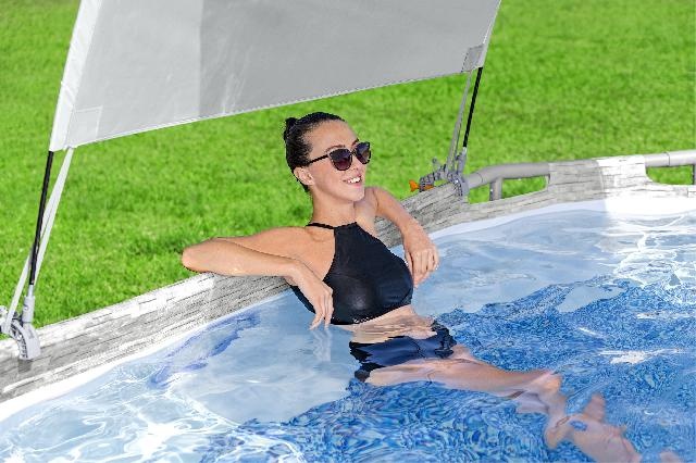 Het zonnescherm is geschikt voor bovengrondse framezwembaden met een breedte van 211 cm tot 344 cm en wordt eenvoudig bevestigd aan de lange zijden. Dankzij het slimme ontwerp is het zonnescherm in slechts 10 minuten op te zetten en net zo eenvoudig weer af te bouwen. Perfect voor zomerse dagen waarop je net dat extra beetje verkoeling zoekt!