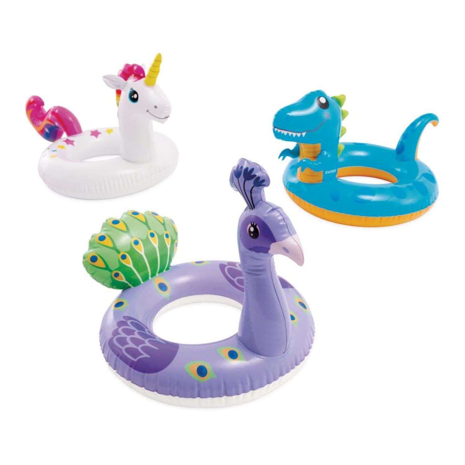 Vrolijke dierenzwembanden van Intex, beschikbaar in 3 vrolijke en kleurrijke varianten.