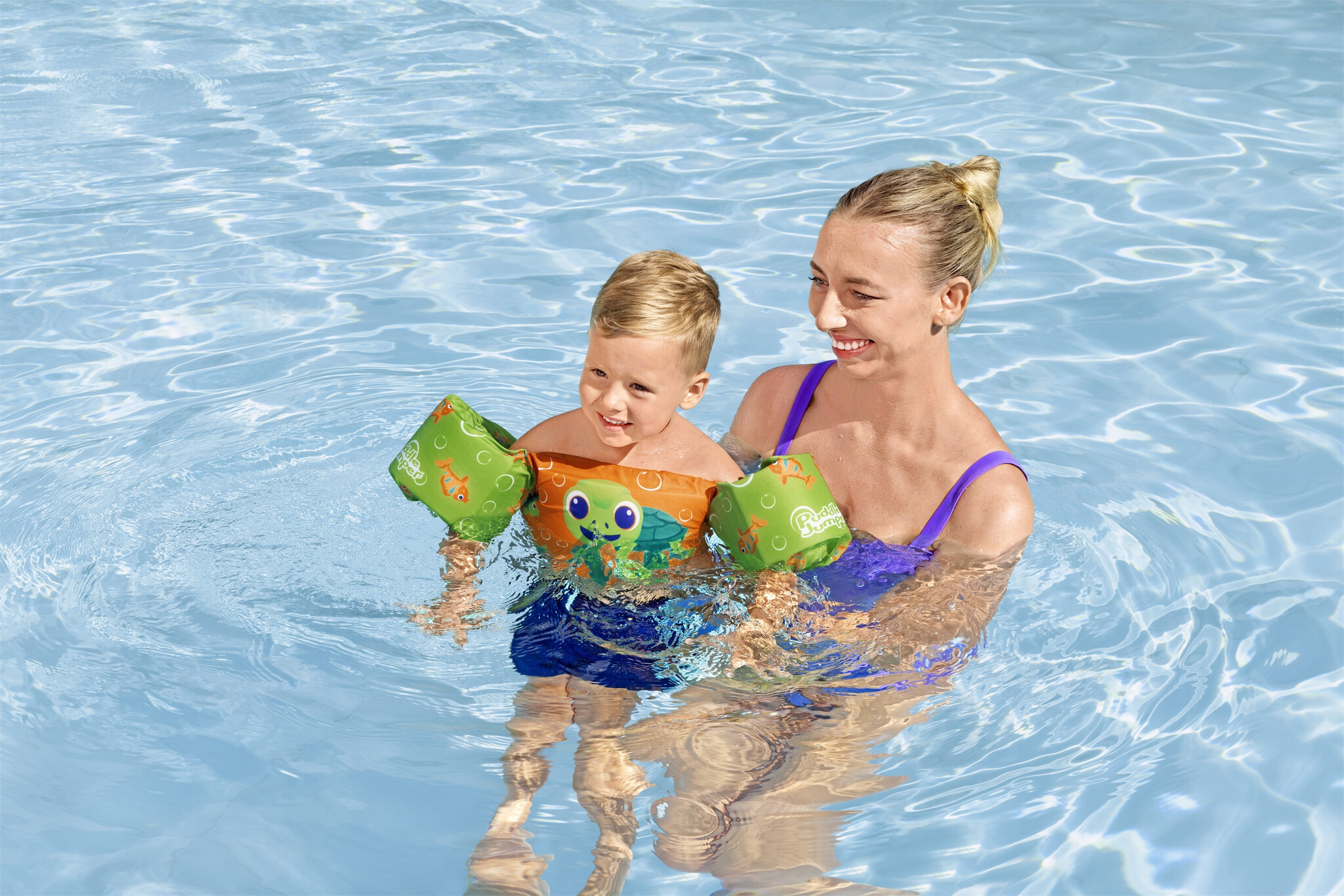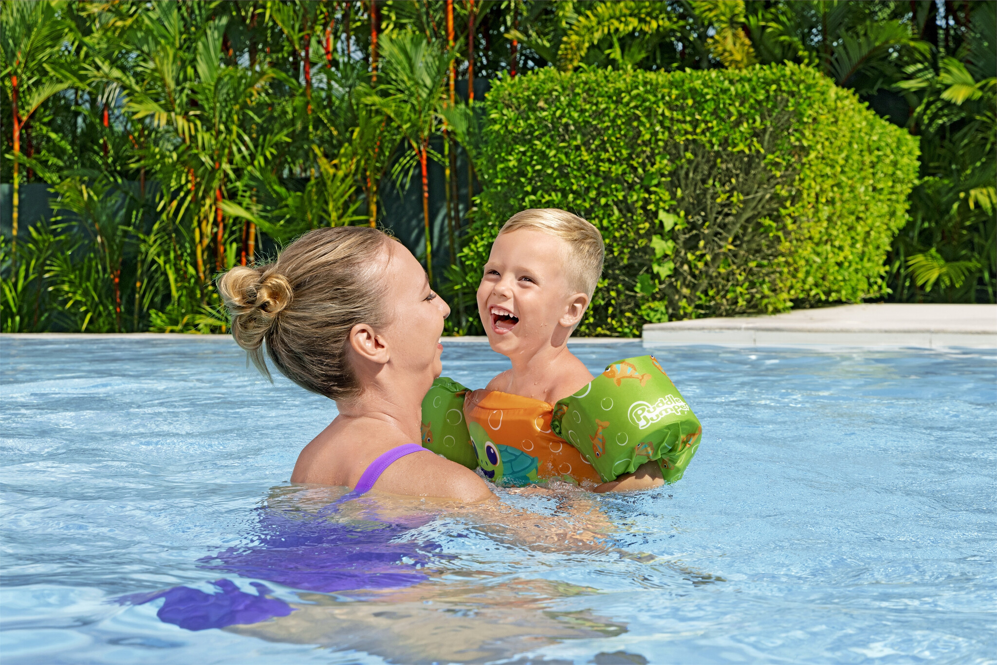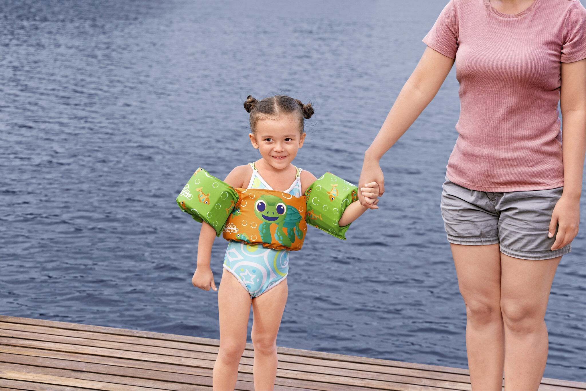Maak de eerste zwemervaring van uw kind veilig en leuk met dit kleurrijke zwemvest met armbandjes. Speciaal ontworpen voor jonge zwemmers, biedt dit zwemvest extra drijfvermogen en comfort.
